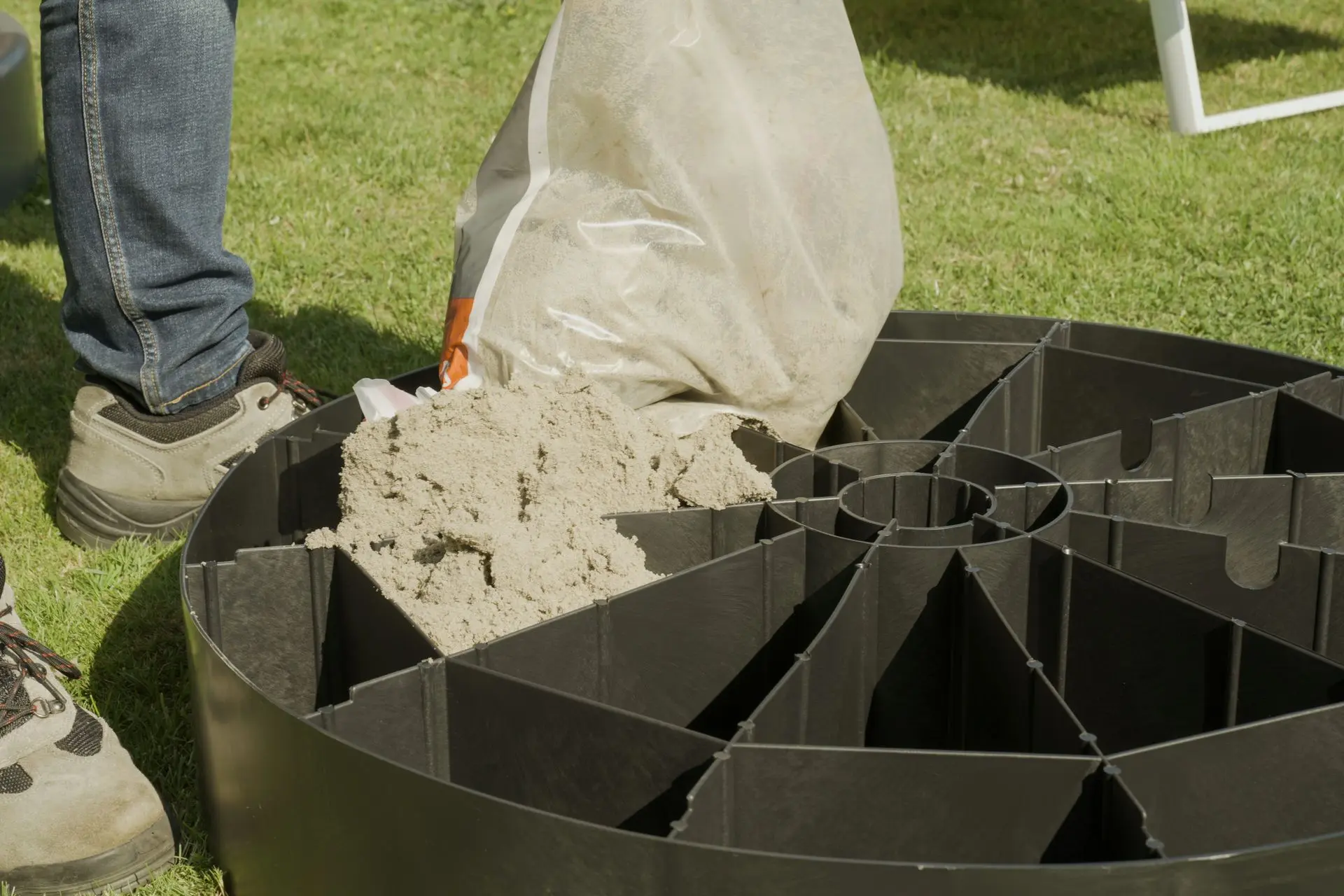 - De ondergrond moet het gewicht van de gevulde voet kunnen dragen zonder te verzakken
