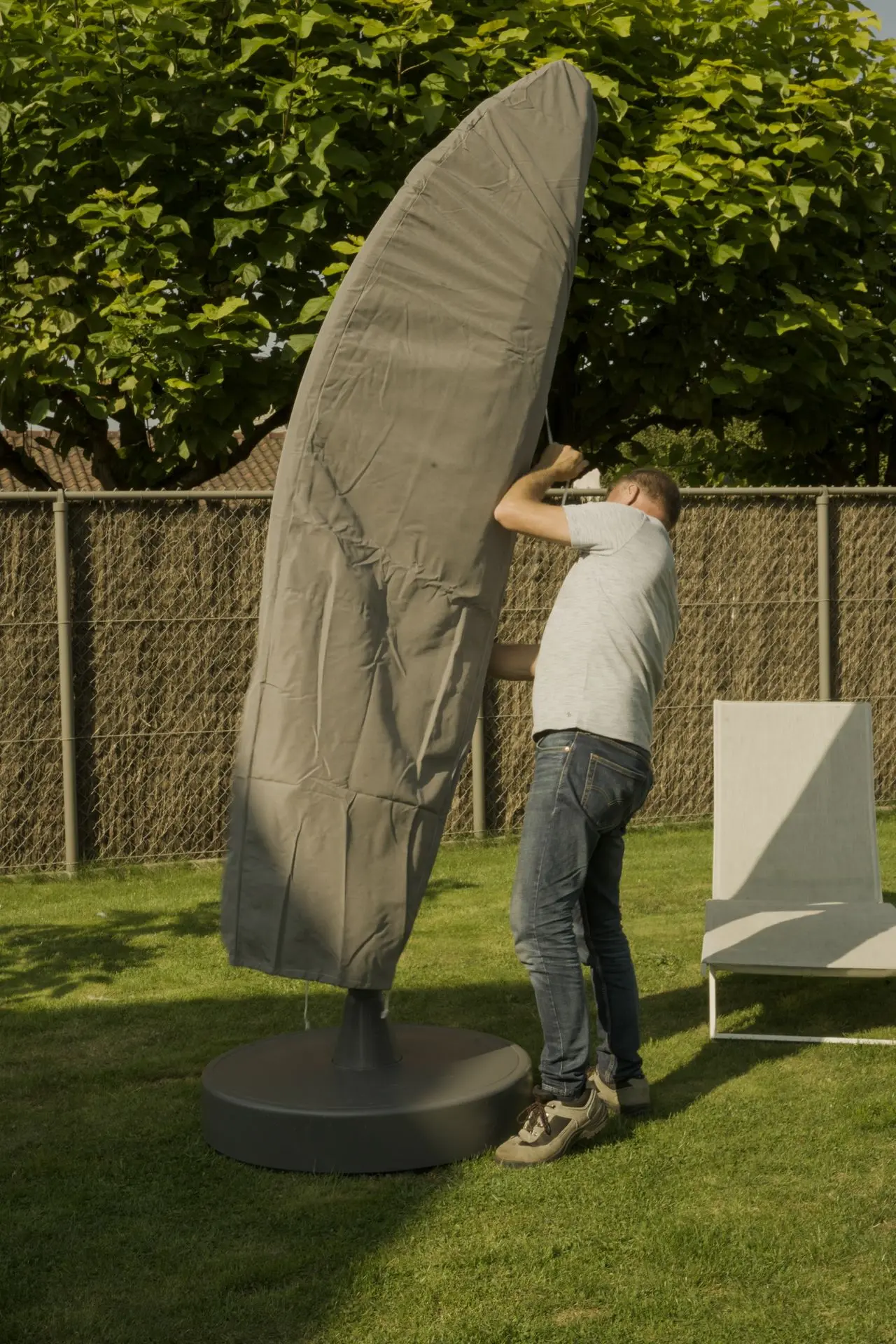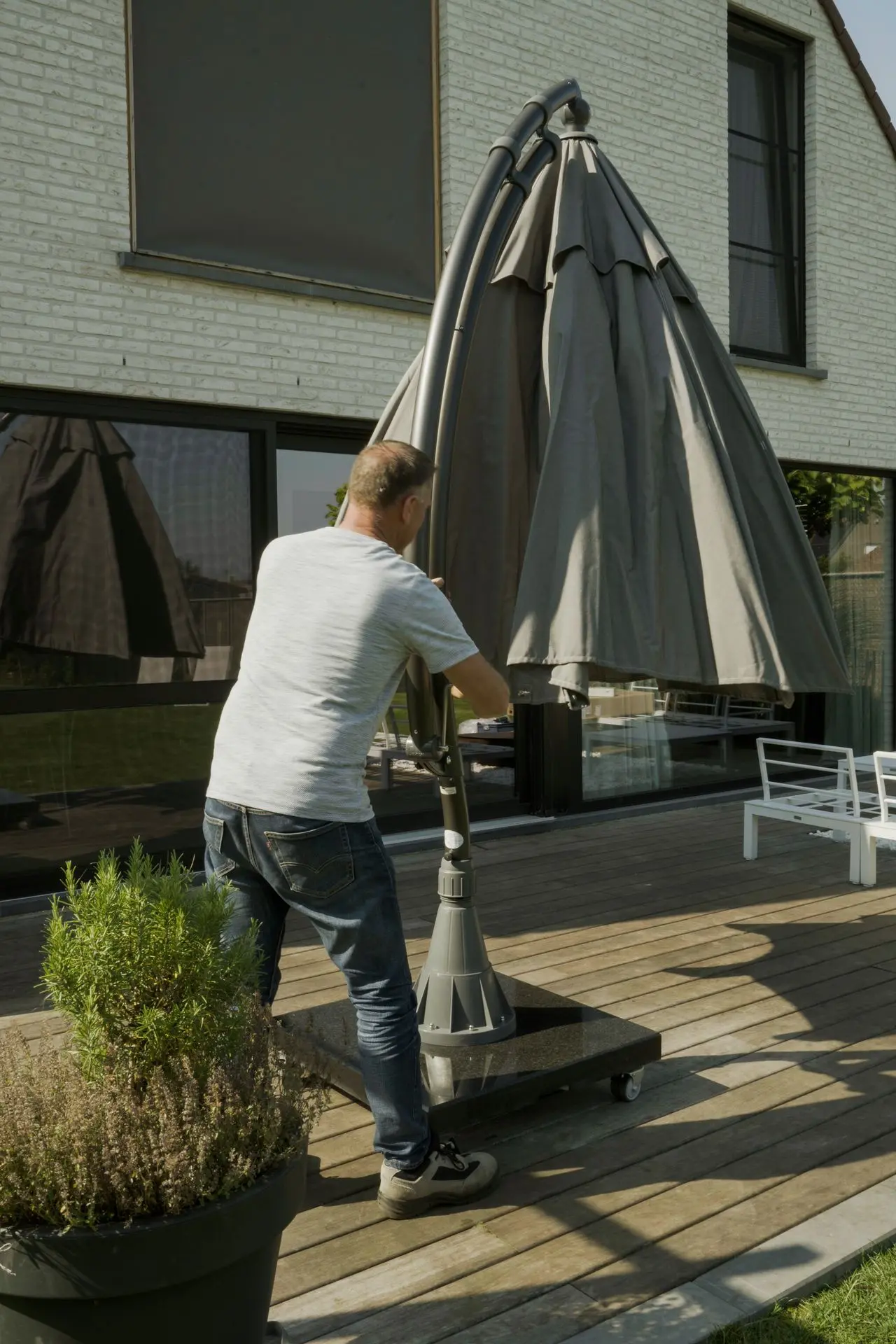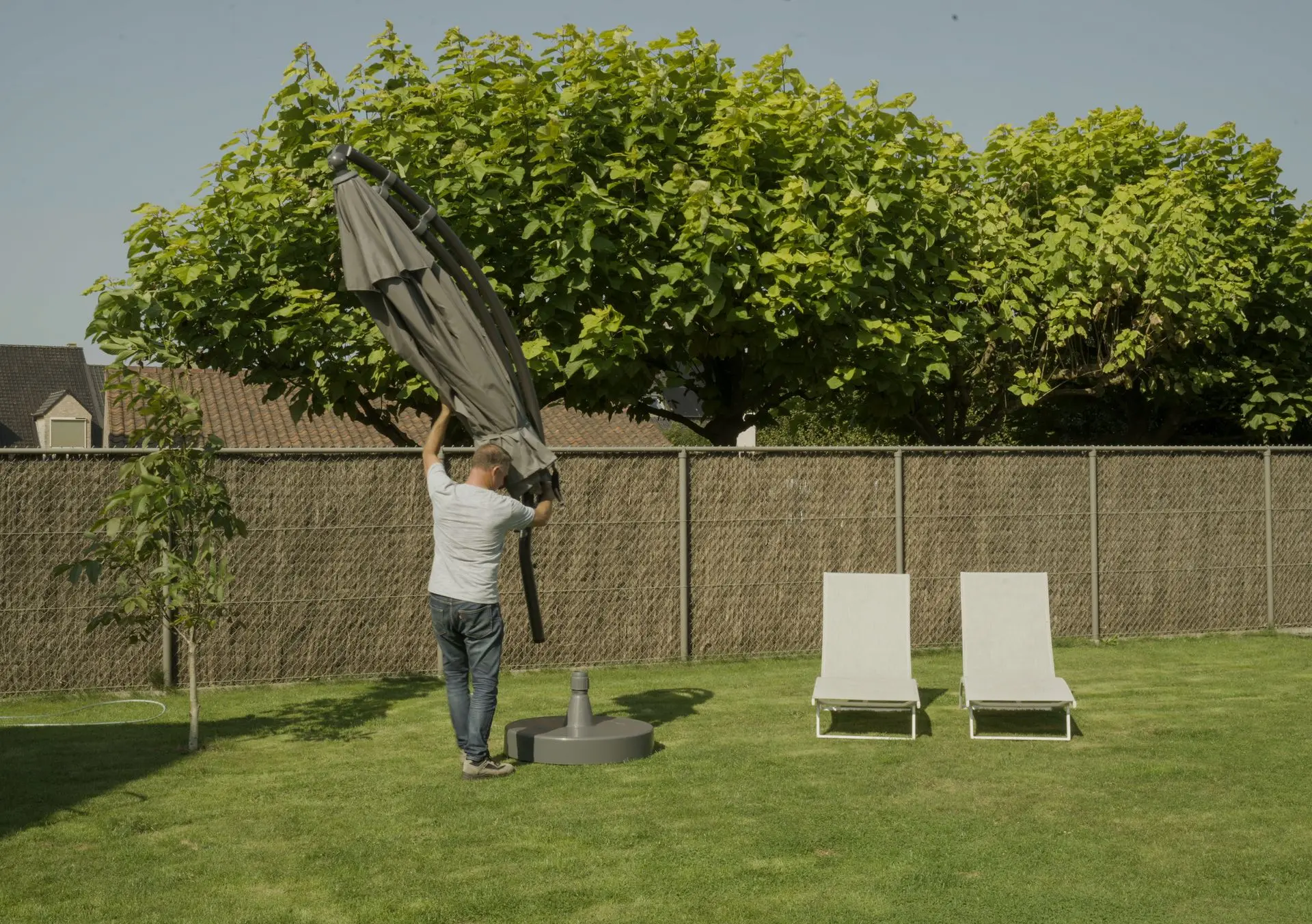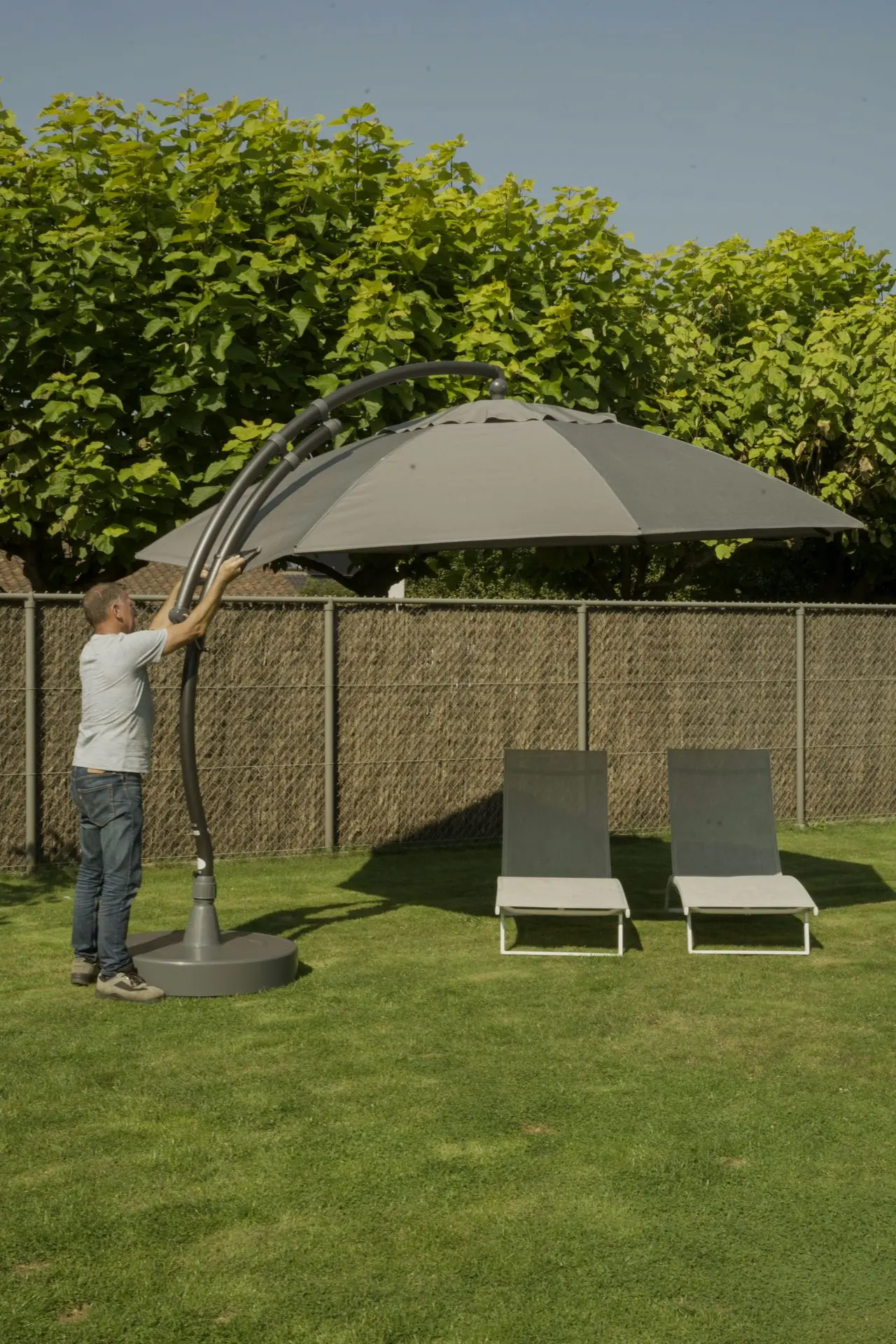 Een zweefparasol installeren en gebruiken